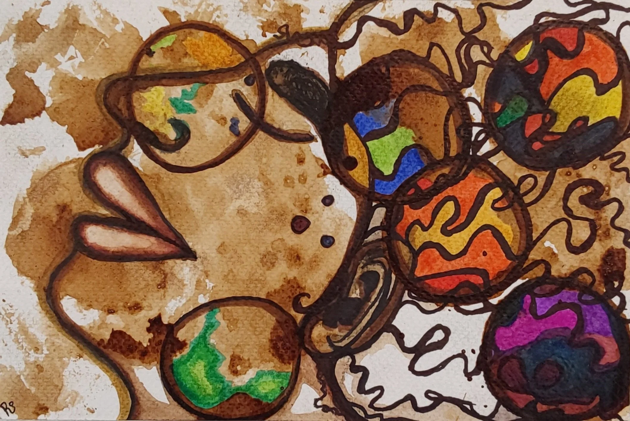 While I explore many forms of art as a full-time artist, watercolor is my primary medium. However, this series is painted with coffee, a symbolic choice. I was raised Mormon and came out as a queer woman within that world. The first time I tasted coffee, it felt like freedom. It was my first small act of rebellion, my first step toward living as my full self. So in this series, coffee becomes both medium and metaphor: a personal offering of liberation, love, and reverence.